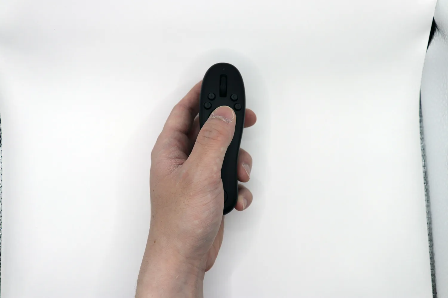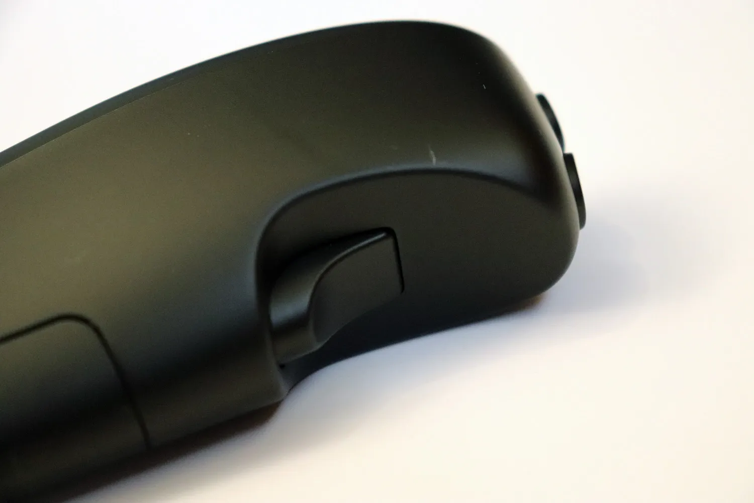 前面にはカスタマイズ可能な9つのボタンと押し込み可能なホイールが付いていて、背面にも一つトリガーがあります。頭頂部には2つのボタンが有り、片手だけでもかなりの簡単に多くの操作が出来ます。